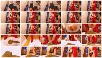 Description: Camera is on the floor in this clip showing us the mistress who is standing on her feet. She has black dress on her, she wears sunglasses and she wears red boots. With her face turned to the camera she sits on a chair and talks. Then she shits on a white paper which is on the floor. She holds the paper from its corners and shows her scat to the camera. While she is next to it she talks to the camera.