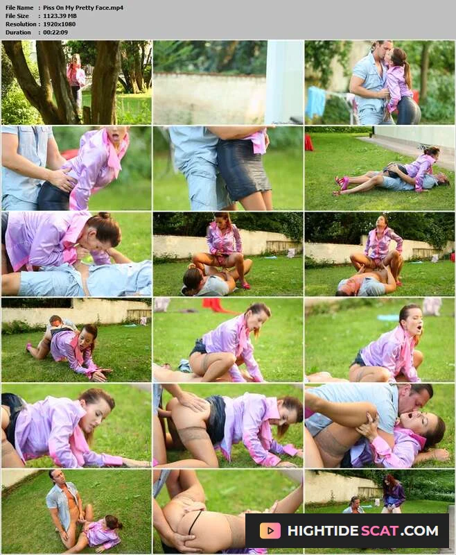 Description: Cindy Dollar is taking a stroll around her yard with her bad self, looking sexy as fuck in her pink and purple satin top and ass about to bust out of her skirt, but instead of just a pleasant outing by her lonesome she soon finds herself blinded by a mystery man's hands, only to then see it's her most favorite of fuck buddies...and they're going to have a fully clothed romp right there in the yard! Sexy Cindy gets right to sucking this guy's rock hard dick, and from there she rides on top, then goes reverse cowgirl, then takes it from behind, and finally when on her back she's in the perfect position to take a load right on her beautiful blouse, covering her amazing tits. Without even needing to change positions this guy busts out a piss, hitting Cindy right on her pretty face and into her slutty mouth, also drenching her blouse, but that's not all the golden showering she's going to take as Kate Gold, also looking fantastic in purple, rains down piss once again on Cindy's wide open mouth! Wanting to join in on the piss fun, Cindy then pisses all over her fuck buddy and they revel in the puddle of piss they've made right there in the yard!